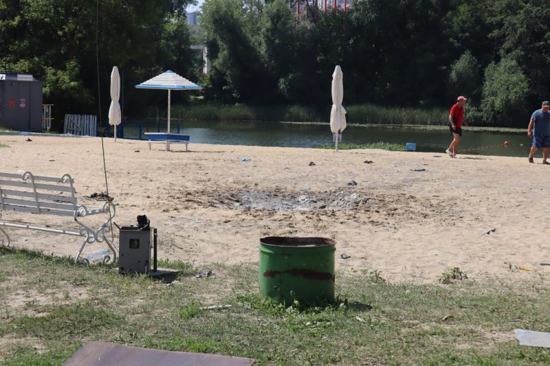 Территорию общественного пляжа приводят в прядок после украинского беспилотного удара.