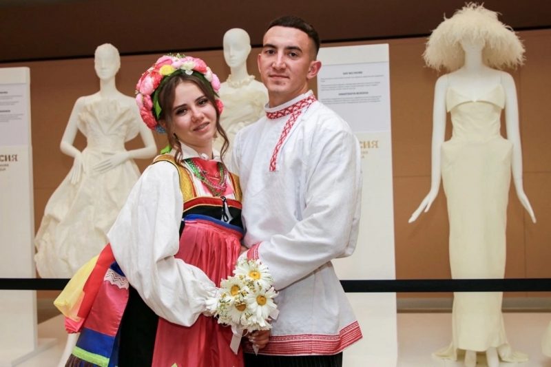 Для церемонию бракосочетания молодожены выбрали традиционные костюмы Курской области. Из столицы в родной край они привезли «семейный очаг», огонь которого был доставлен прямиком из Мурома.