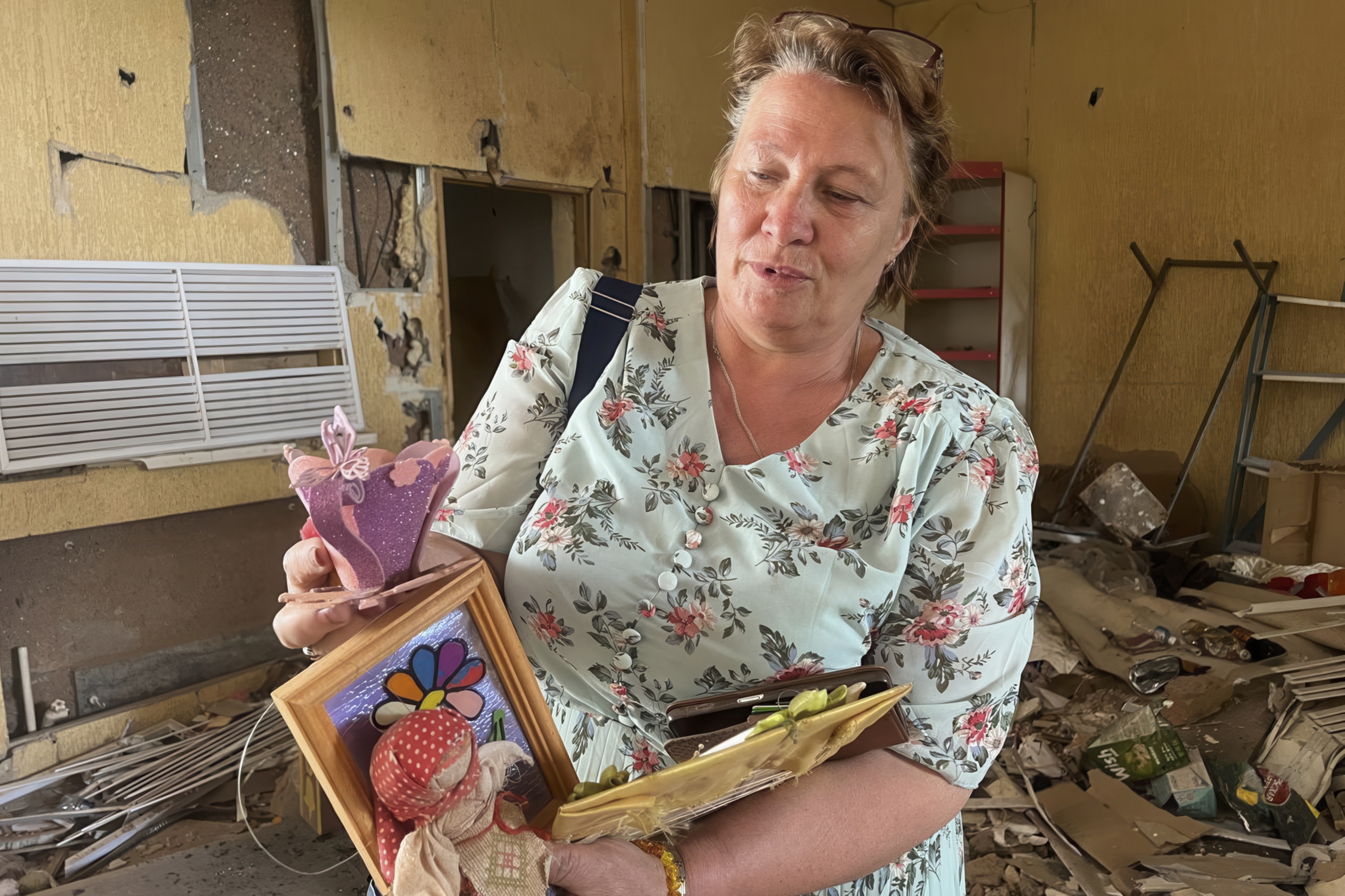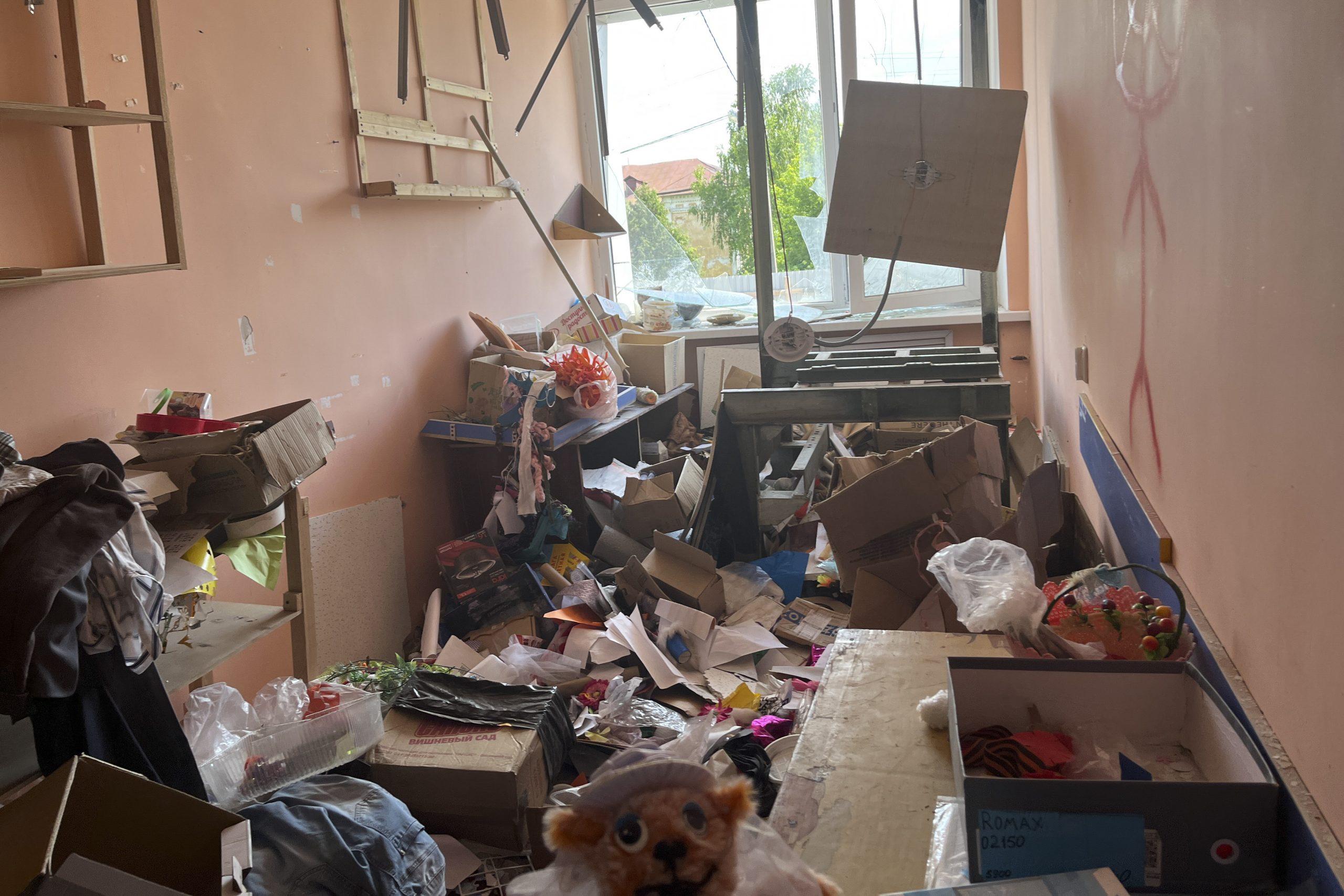 – Здесь, на этой полке были иконы. Ни одна икона не упала! Здесь был портрет старца Ипполита – незадолго до прилёта я отдала его в Центр Гранина. И там во время прилёта портрет батюшки уцелел, – об этом все потом писали. Когда-то здесь был наш инвентарь, краски – в прошлом году благотворители нам купили много материала. В августе мы его вывезли, работали с ним уже в Курске. Там и сейчас многие ребята с родителями. Занятия мы проводим дистанционно. В Курске я работала и в школах, и в садиках – давала мастер-классы. Мы с ребятами участвовали в конкурсах. В Курске не ждали, что мы привезём поделки. А мы заняли первые места.