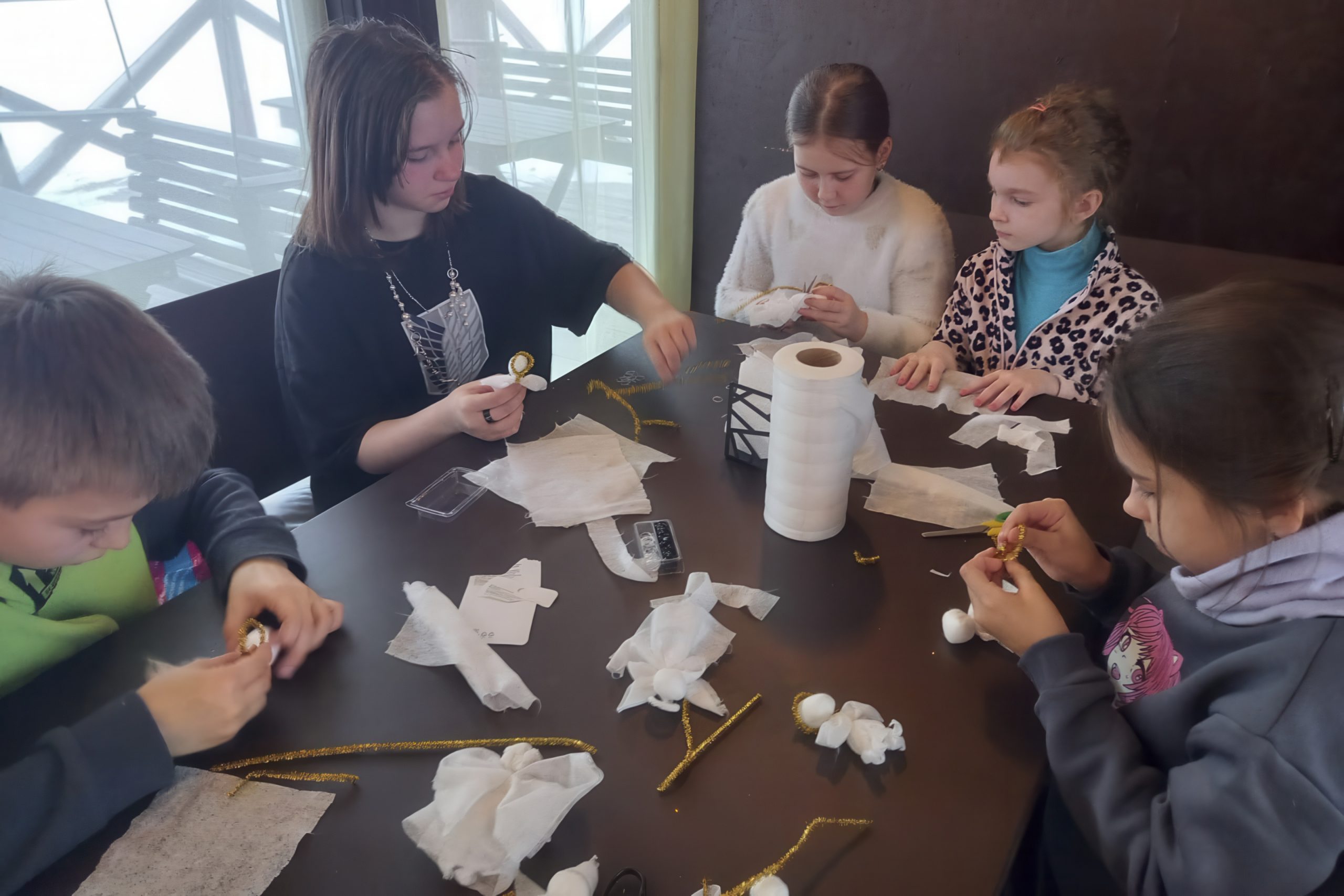 Обстановка на занятиях всегда была творческой. Все поддерживали друг друга. Ребята занимались бесплатно: очень помогали благотворители. Некоторые стали покупать материал сами: «Мне папа дал на обед, я ниток купил! С разрешения папы!» Ребята подружились с детьми из воскресной школы: на Рождество и Пасху они приходили к студийцам с концертами. Программа в студии была гибкой.