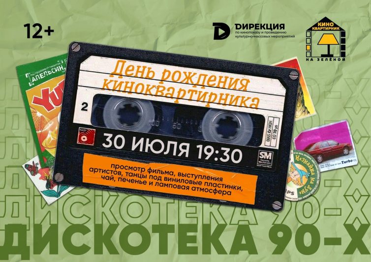 Гостей ждут выступления артистов, танцы под виниловые пластинки, показ фильма «Дети понедельника», угощения и уютная атмосфера. Дресс-код: дискотека 90-х. Начало в 19:30.