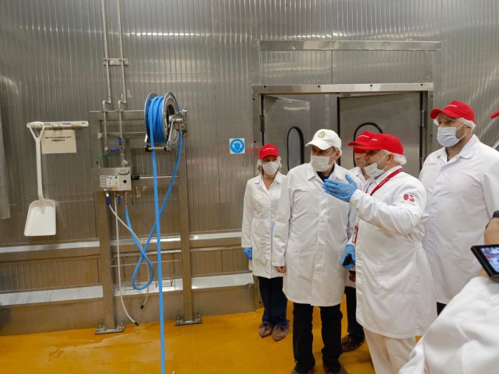 Утром Хинштейн уже посетил местную птицефабрику. Здесь производят охлаждённое и замороженное мясо кур. Для временно исполняющего обязанности губернатора провели экскурсию по предприятию.