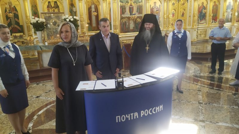 В курском Храме Покрова Божьей Матери прошла церемония специального гашения почтовых марок.