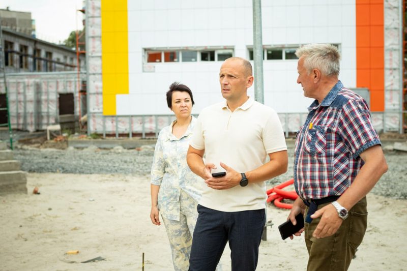 Фасад старого здания утеплили, заменили окна, внутри пристроя подключены все коммуникации, устанавливают оборудование. Приступили к благоустройству территории.