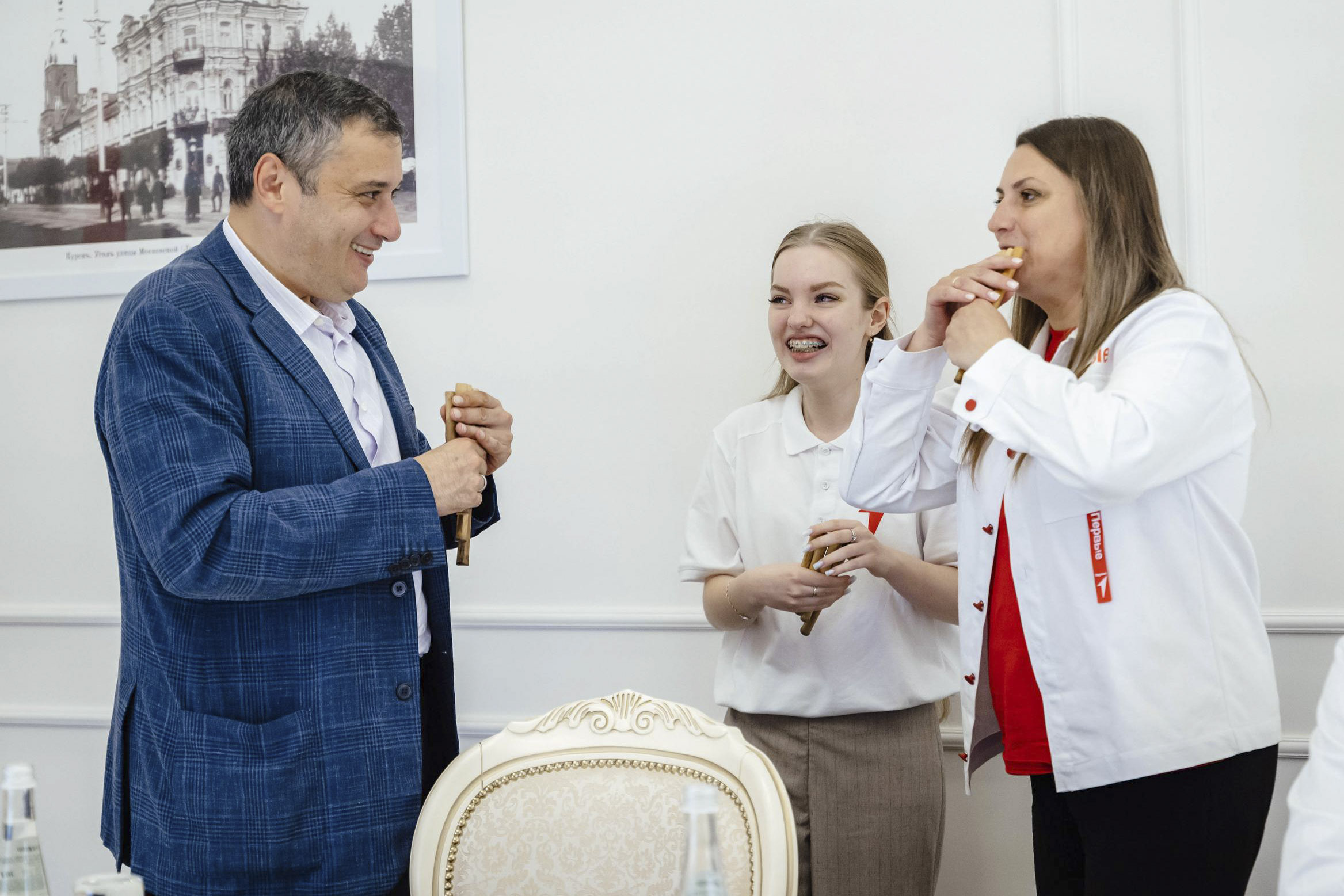 Врио губернатора Курской области Александр Хинштейн встретился с активисткой регионального отделения «Движения первых» Ариадной Шестопаловой и её родителями – Евгением и Ириной. Недавно девочка опубликовала в соцсети пост, в котором рассказала о том, что мечтает записать в студии суджанскую народную песню и прославить её на всю страну.