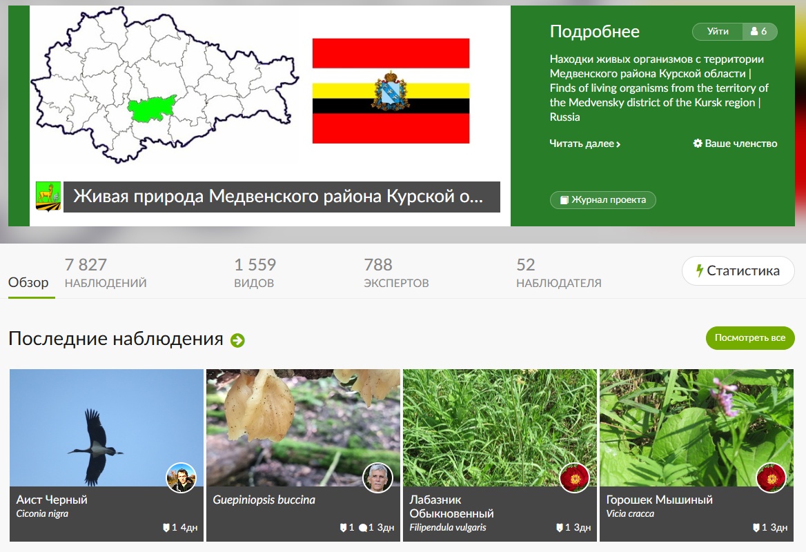 Для учёта биологического разнообразия Медвенского района биологи ведут специальный проект на платформе iNaturalist, посвященный живой природе. Он доступен по ссылке goo.su/Kxfxsc8. Такие проекты создали для всех районов Курской области.