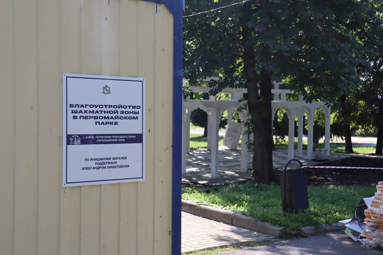 В Первомайском парке устанавливают беседку для игры в шахматы. О новой площадке для интеллектуального досуга врио губернатора Курской области Александр Хинштейн договорился с вице-президентом курского отделения Федерации шахмат России Олегом Куликовым.