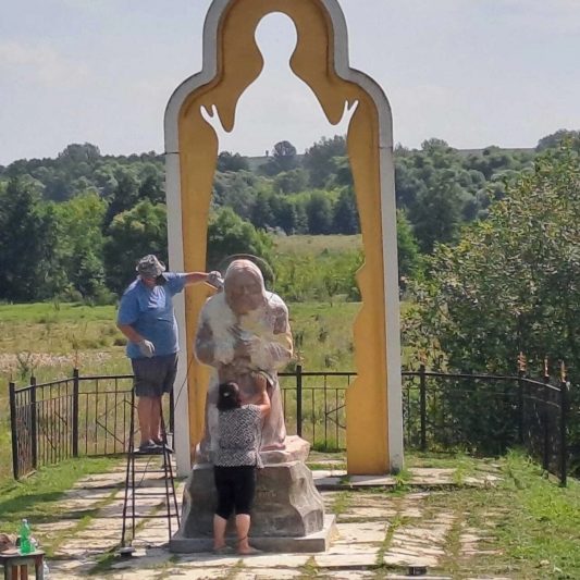 Вместе с сотрудниками приехали и дети – сегодня в «Импульсе» временно живут ребята, родители которых попали в трудную жизненную ситуацию. Подростки помогают ухаживать за святыней, выкашивают вокруг траву.