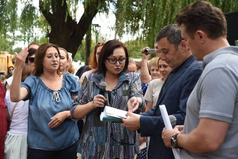 На встречу с Александром Хинштейном собралось около ста человек. Разговор начали с названия обновлённого парка. На прошлой неделе врио губернатора предложил назвать его в честь знаменитой курской сказочницы Екатерины Авдеевой, первой опубликовавшей «Колобка» и другие классические произведения русского фольклора. Однако голосование в соцсетях показало – большинство курян против этой идеи.