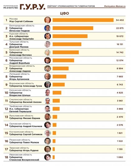 По итогу врио губернатора Курской области Александр Хинштейн занял 6 место в рейтинге глав регионов по упоминаниям, собрав 19 672 упоминания. Также он разместился на 3-й позиции в топе глав в ЦФО.