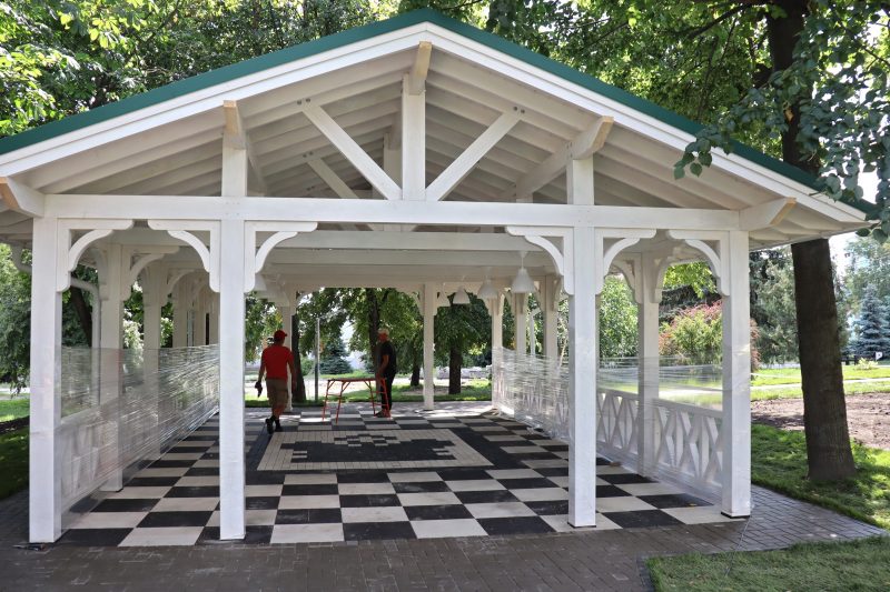 В парке имени Первого мая близится к завершению установка павильона для игры в шахматы. Торжественное открытие состоится в ближайшие дни.