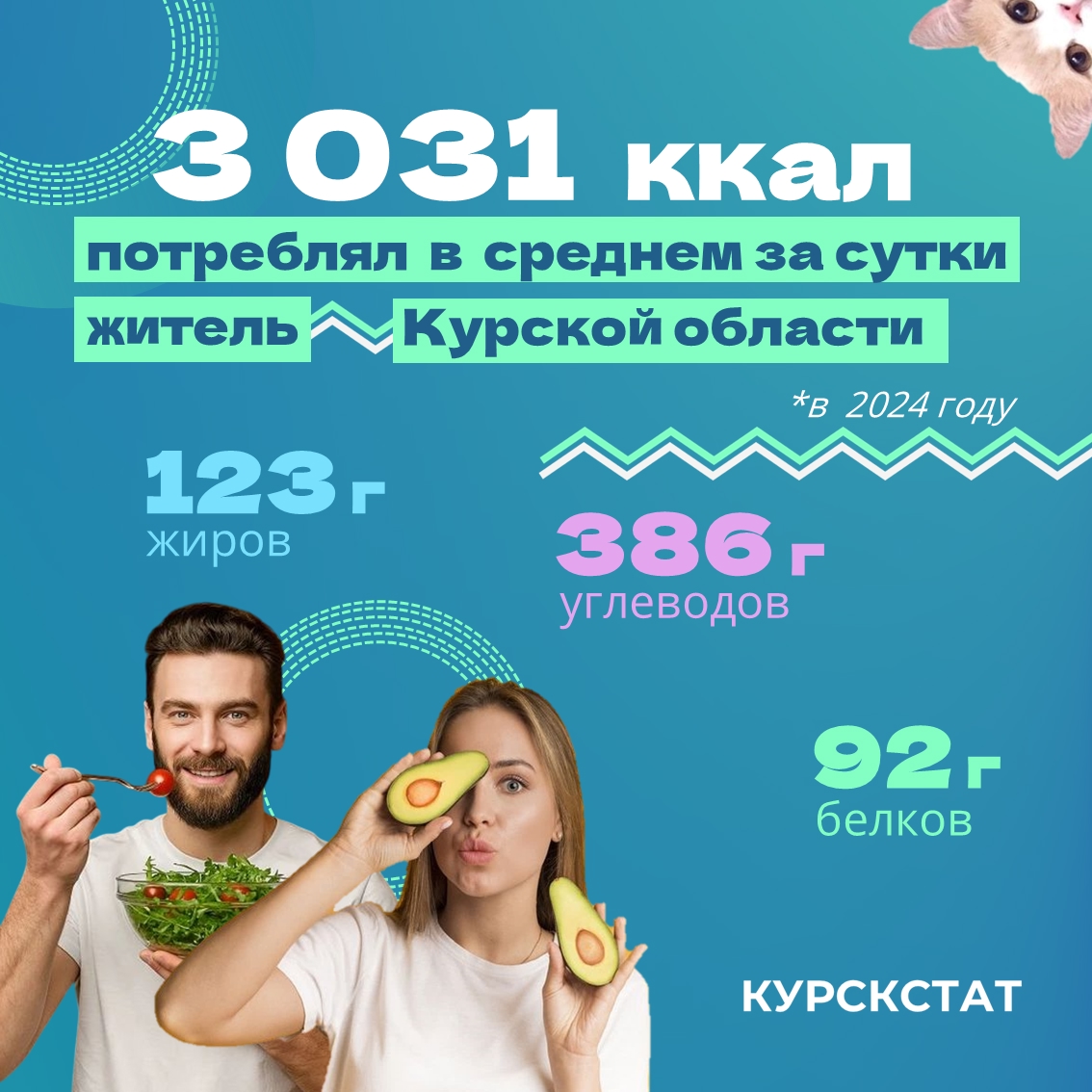 В минувшем году Курскстат провел обследование бюджетов домашних хозяйств Курской области. Оно показало, что калорийность суточного рациона одного курянина составила 3 тысячи килокалорий, это 92 грамм белков, 123 грамм жиров и 386 грамм углеводов.