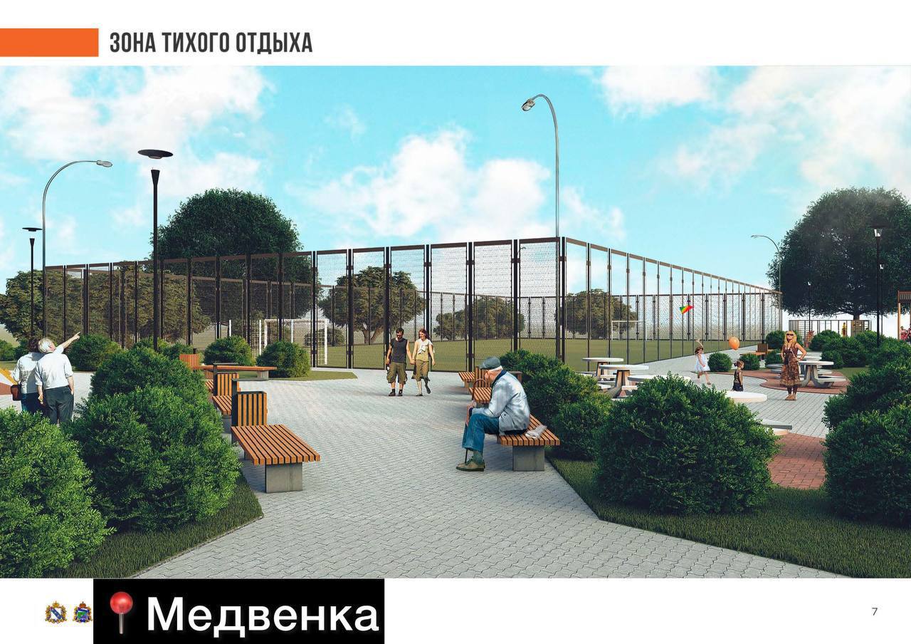 Медвенка (68,8 млн руб.) — второй этап возрождения исторического парка «Советский сад». Планируется создание набережной, амфитеатра, спортивных и детских зон, что превратит это место в жемчужину района.