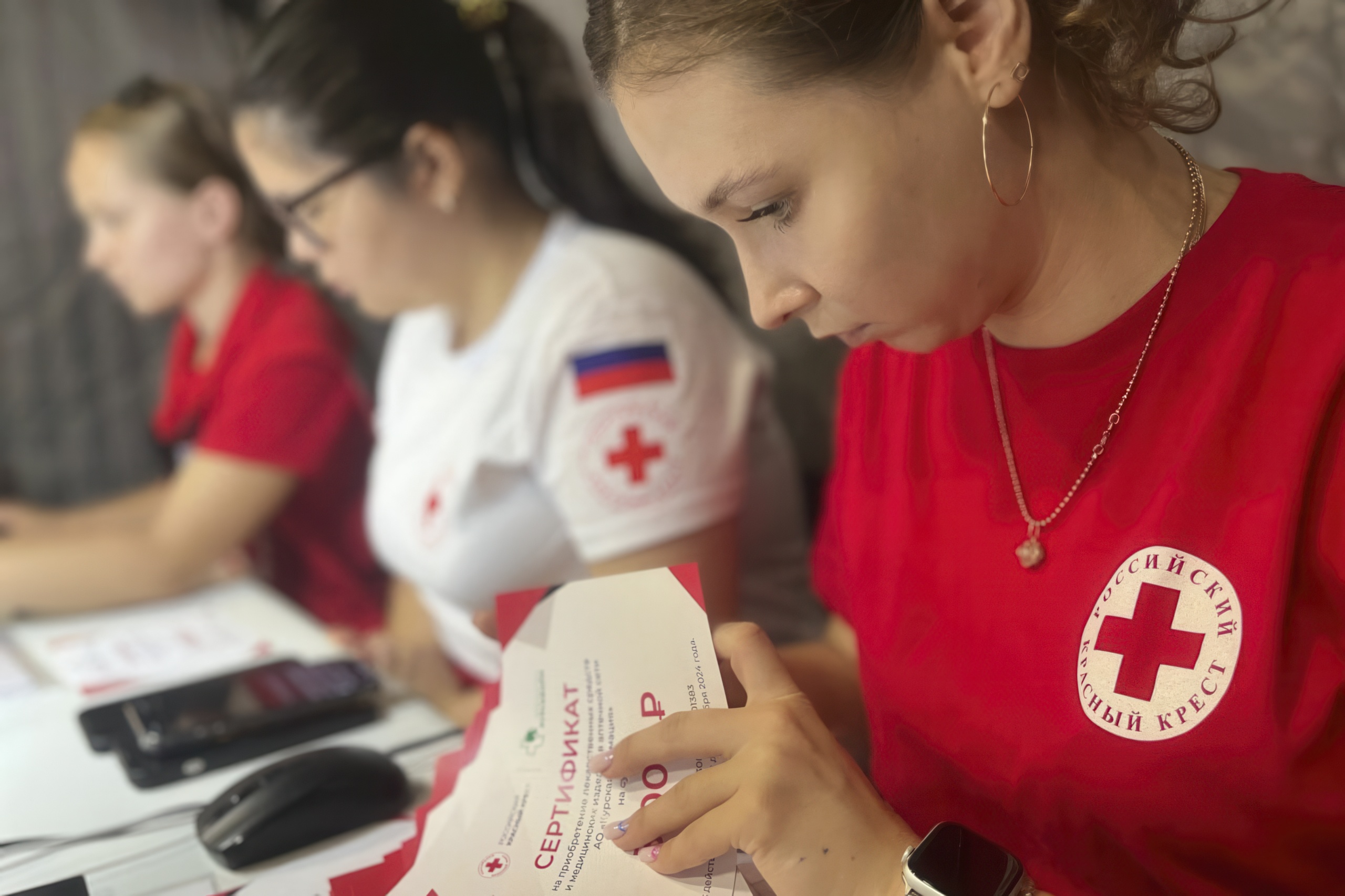 За год РКК выдал 62 239 продуктовых и столько же гигиенических наборов. Кроме того, 26 000 человек получили аптечные карты на сумму 3 000 рублей, ещё 31 000 – сертификаты на товары первой необходимости на сумму 5 000 рублей. Более 15 тысяч человек получили адресную помощь, включая медицинские изделия, средства ухода и технические средства реабилитации. Параллельно с этим Российский Красный Крест запустил горячую линию для поиска пропавших родственников. За год на неё поступило более 15 600 звонков, найдено 2 740 человек.