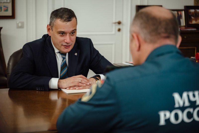Глава МЧС России Александр Куренков и врио губернатора Курской области Александр Хинштейн обсудили меры безопасности и восстановление приграничья.