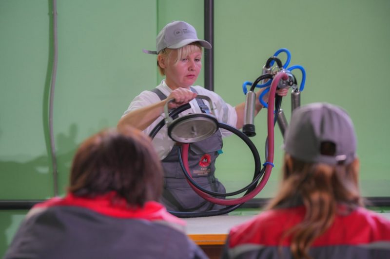 Конкурс длится два дня, и участники разделены на две группы. Мария уже продемонстрировала свои навыки в разборке и сборке доильного аппарата, что является одним из этапов соревнований. Впереди её ждут другие испытания: тестирование знаний, санитарная подготовка и доение коров в доильном зале.