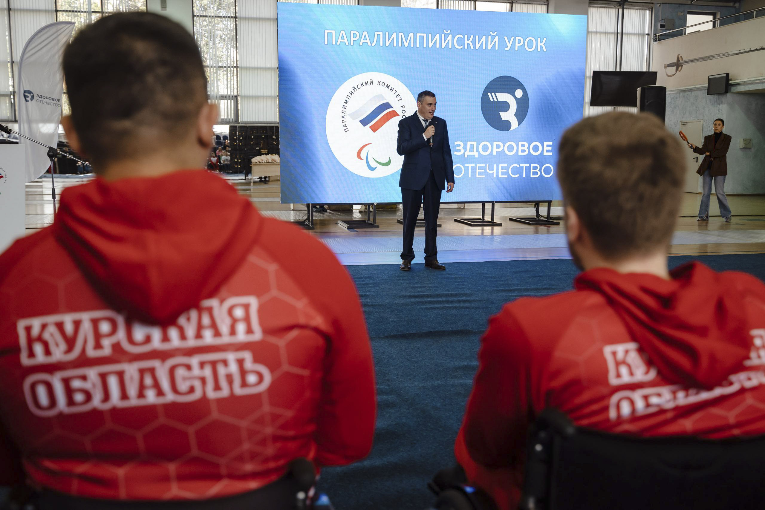 В среду в курском Центре фехтования президент Паралимпийского комитета России Павел Рожков провёл открытый урок с участием известных спортсменов: шестикратного чемпиона Паралимпийских игр Сергея Шилова, трёхкратного чемпиона Москвы по пауэрлифтингу Рината Васильева, чемпионки Европы по паралимпийскому фехтованию Анны Гладилиной.
