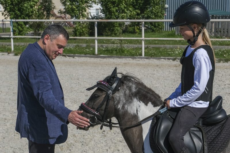 Глава региона познакомился с преподавателями школы олимпийского резерва и её воспитанниками. Здесь сегодня бесплатно учатся 196 спортсменов. Для занятий юных спортсменов задействованы 63 лошади. Причём, для детей 7-9 лет работает платная пони-группа.