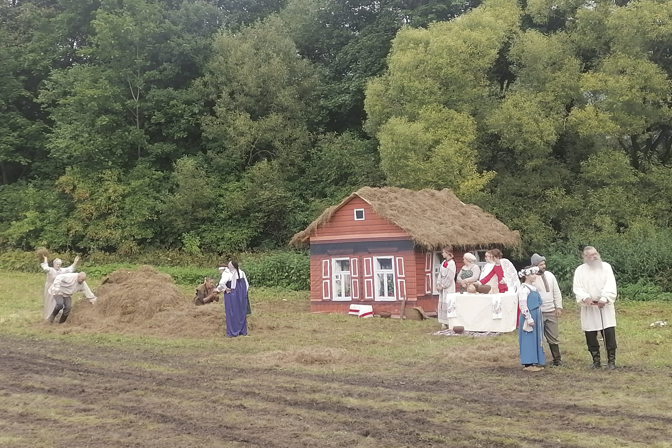 Одновременно на двух сценах и на поле проходил исторический спектакль «Война и мир», в котором соединились балет и симфонический оркестр, реконструкторы и артисты театров и кино и даже кони.