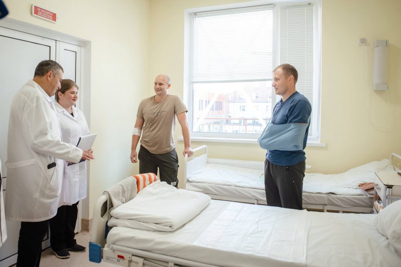 Также Хинштейн навестил раненого накануне сотрудника полиции. У него осколочные ранения, но чувствует себя хорошо. С ним в палате раненый при недавнем обстреле Рыльска мужчина. Он рассказал, что уцелел лишь потому, что осколки дрона летели с торца дома — угол здания закрыл его.