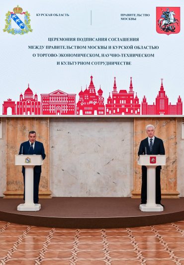 Врио губернатора Курской области Александр Хинштейн находясь в однодневной командировке Москве встретился с мэром столицы Сергеем Собяниным и подписал соглашение о сотрудничестве между Курском и Москвой.
