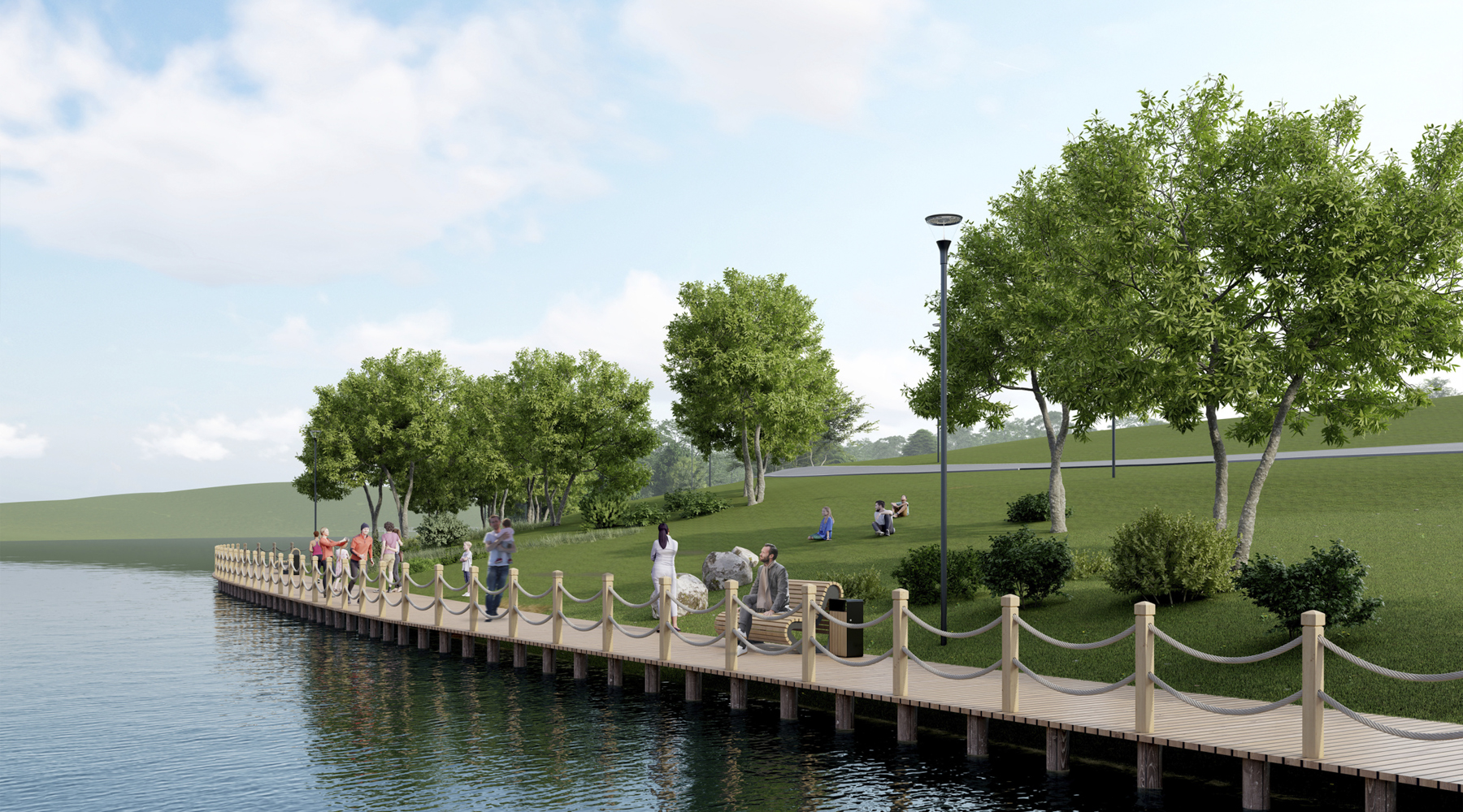 Разработка проекта шла совместно с местными жителями. Один из их запросов – функциональные зоны для семейных праздников и камерных встреч. Так, на городском пляже появится кафе с открытой террасой, сцена-подиум, площадка для массовыми мероприятий, зона тихого отдыха, качели.
