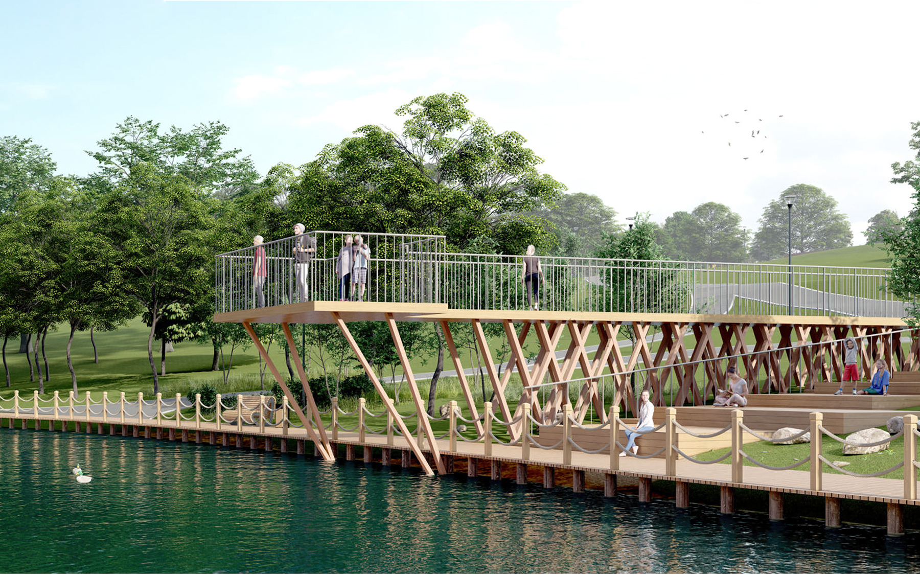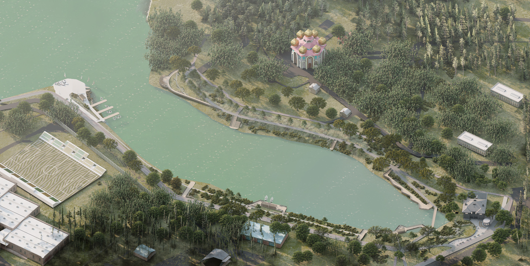 В июле этого года подрядчик приступил к реализации первого этапа проекта. До 1 ноября здесь должны привести в порядок парк и береговую линию пруда, установить беседки, сцену, смотровую площадку и павильон нестационарного торгового объекта.