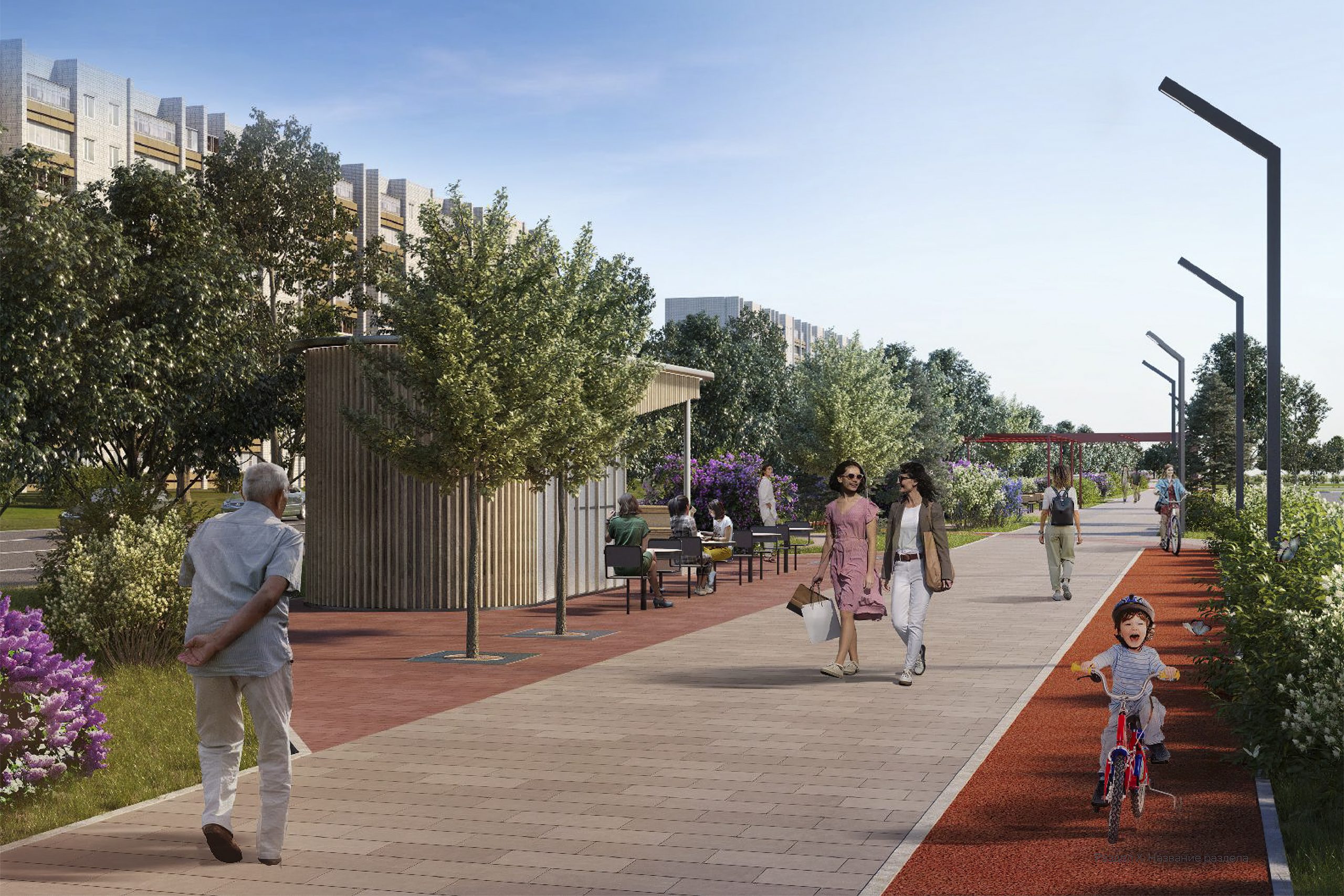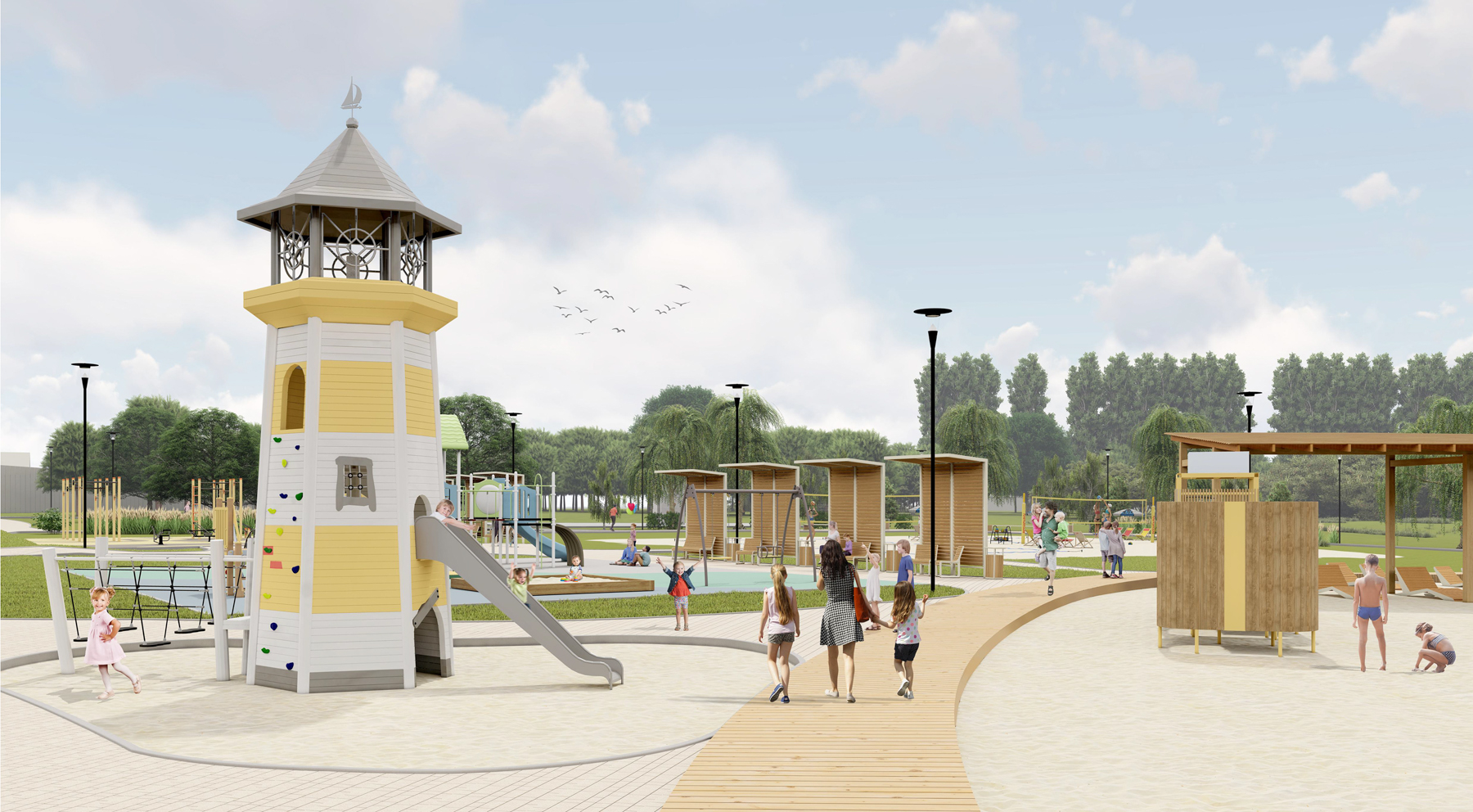 А ещё, согласно концепции, единый пешеходный маршрут соединит существующие детскую и спортивную площадки с новыми. Рядом с ними появится детский игровой комплекс, площадка для пляжного волейбола, зона для занятий лечебной физкультурой и йогой.