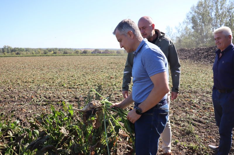 Работники местного сельхозпредприятия собрали урожай с тысячи гектар. Общая площадь полей сахарной свеклы здесь составляет свыше 3,6 тысячи гектара. Убранный урожай транспортируют для переработки на ближайший филиал сахзавода.