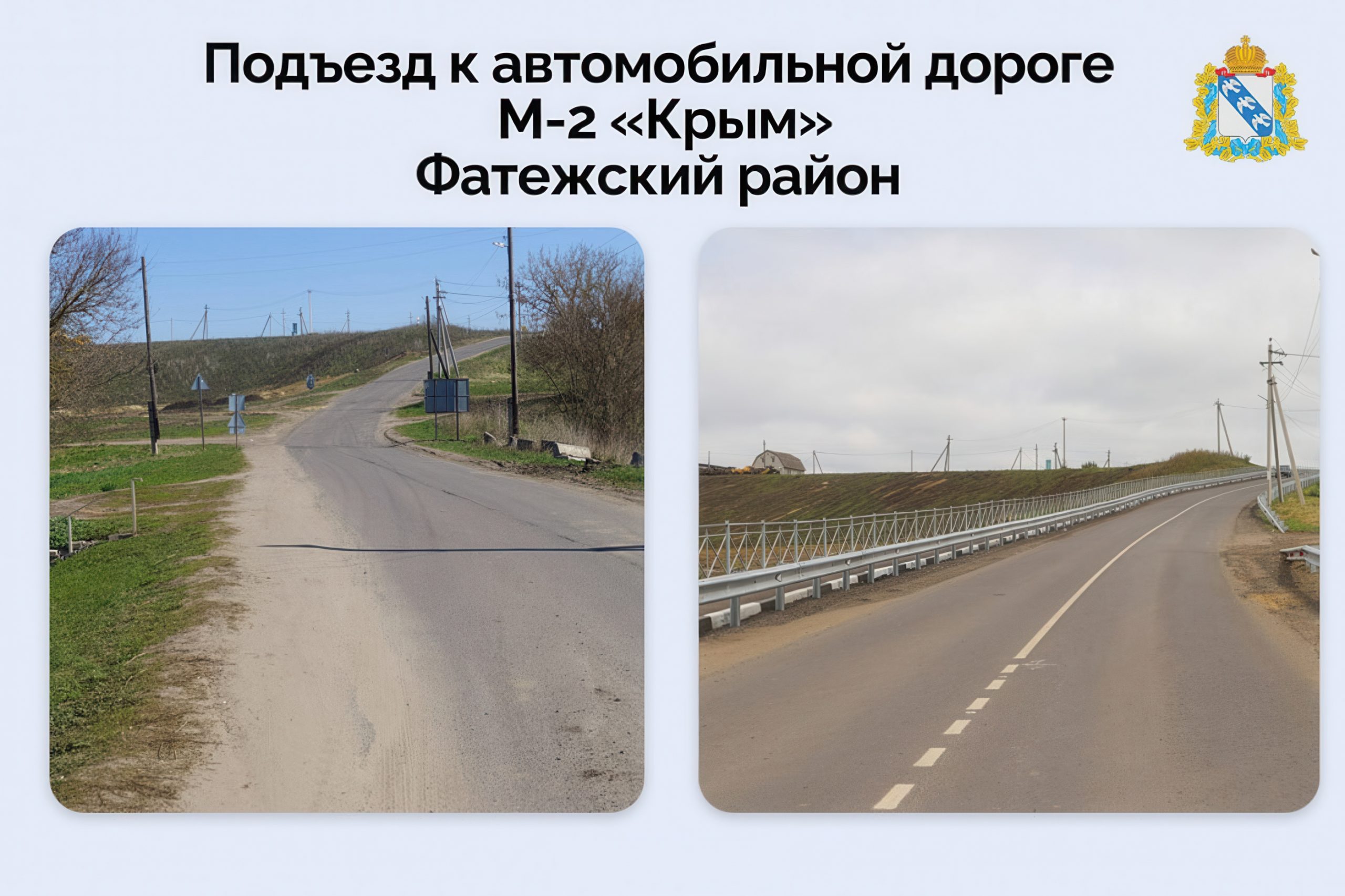 Дорожники завершили ремонт подъезда к автомобильной дороге М-2 «Крым» Москва – Тула – Орёл – Курск – Белгород – граница с Украиной. Этот участок трассы в Фатеже ведёт к музею композитора Георгия Свиридова и Фатежскому филиалу краеведческого музея. Работы провели в рамках национального проекта «Инфраструктура для жизни».