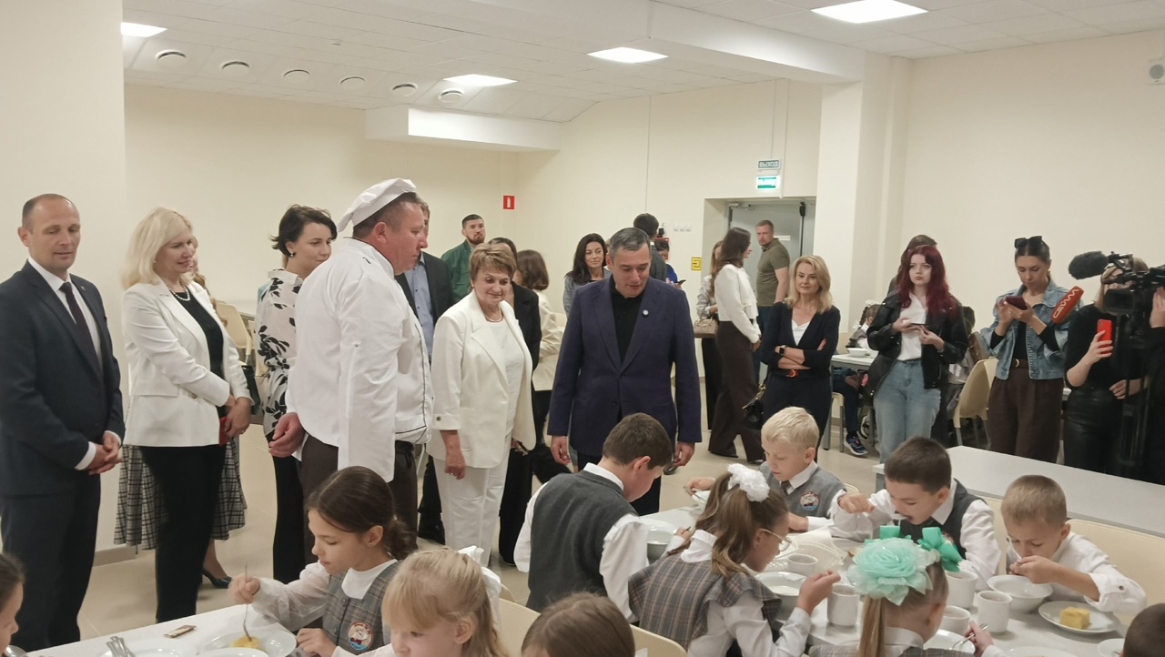 Учебное заведение рассчитано на 225 ученических мест. Глава региона пообщался с первоклассниками, посетил школьную столовую и медпункт, танцевальный и спортивный залы — практически все помещения. Он оставил запись в книге почетных посетителей, а также пообщался с родителями школьников.