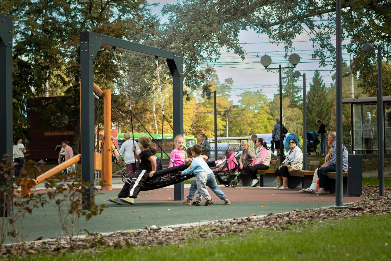 В городском сквере появились новые площадки, освещение и места для отдыха.