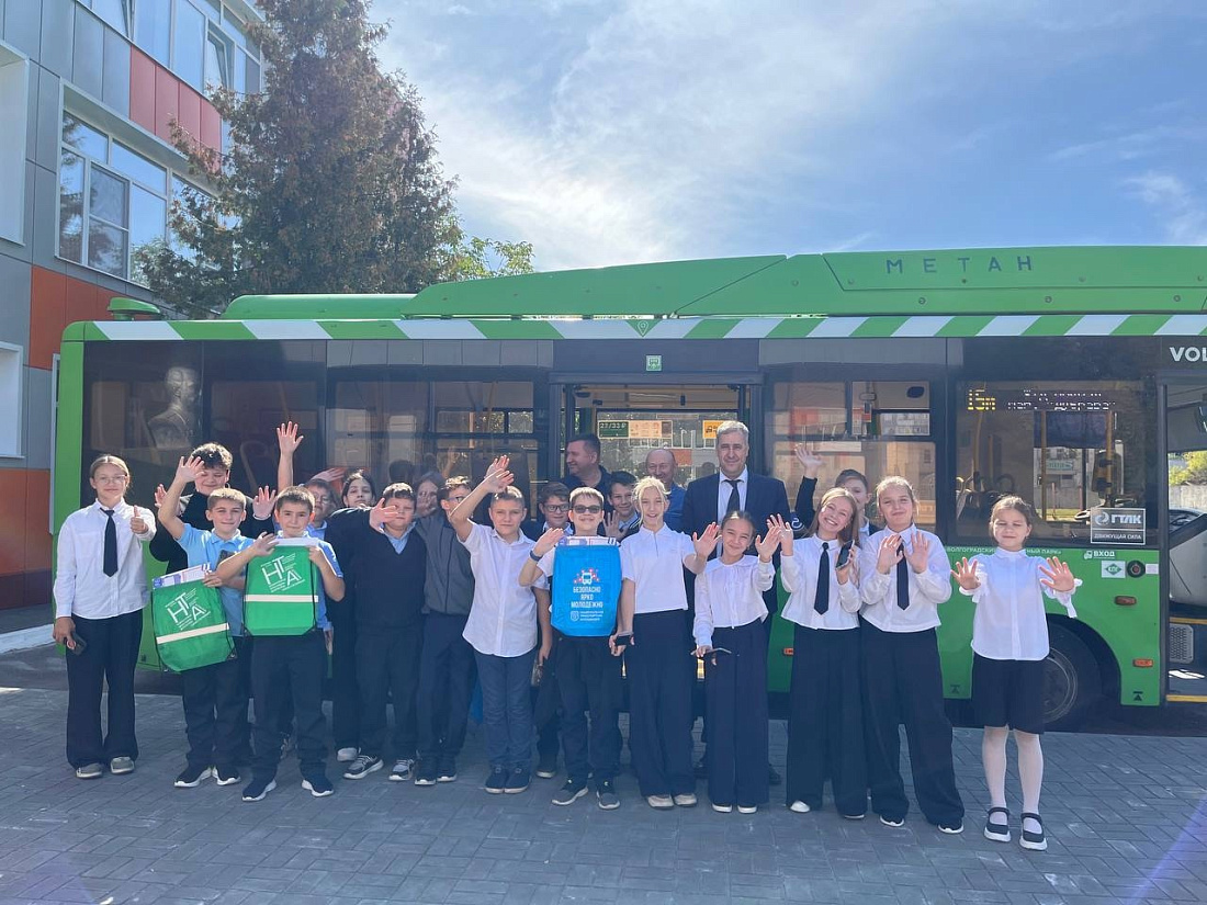 Затем школьники вышли во двор, где их ждал автобус «Волгабас». Вместе с исполнительным директором Курского филиала НТА Константином Марьясиным ребята узнали, что такое слепые зоны, почему детям безопаснее входить в первые две двери автобуса — водитель не видит заднюю дверь из-за пассажиров на остановке. Также обсудили, почему нельзя обходить автобус спереди или сзади.