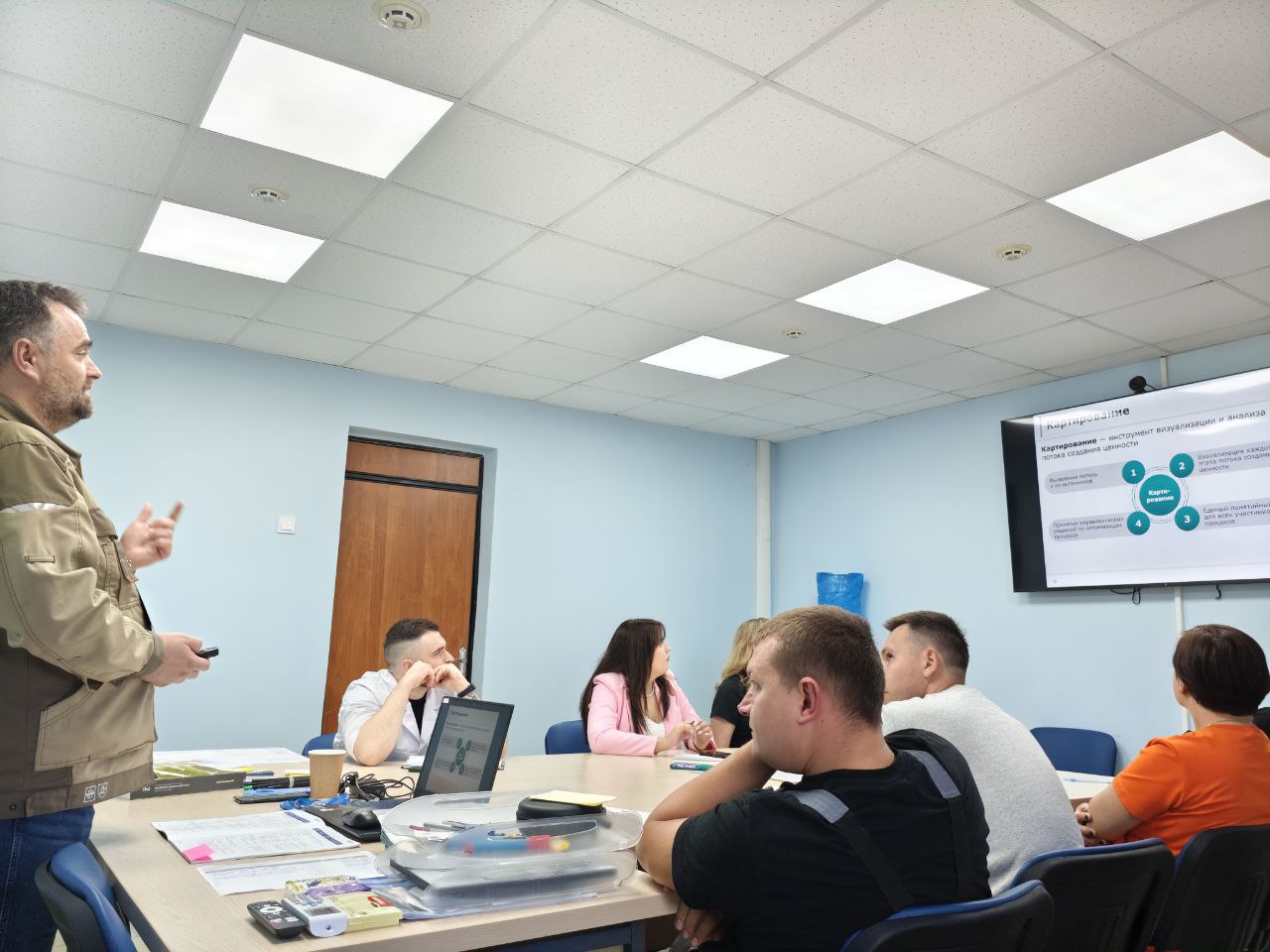 Учебный процесс был начат с рассмотрения фундаментального понятия — семи видов потерь. Потери представляют собой операции, которые потребляют ресурсы, но не создают ценности для конечного потребителя. В рамках активного обсуждения участники мероприятия освоили методику выявления и идентификации данных потерь в рамках своих профессиональных обязанностей, а именно: