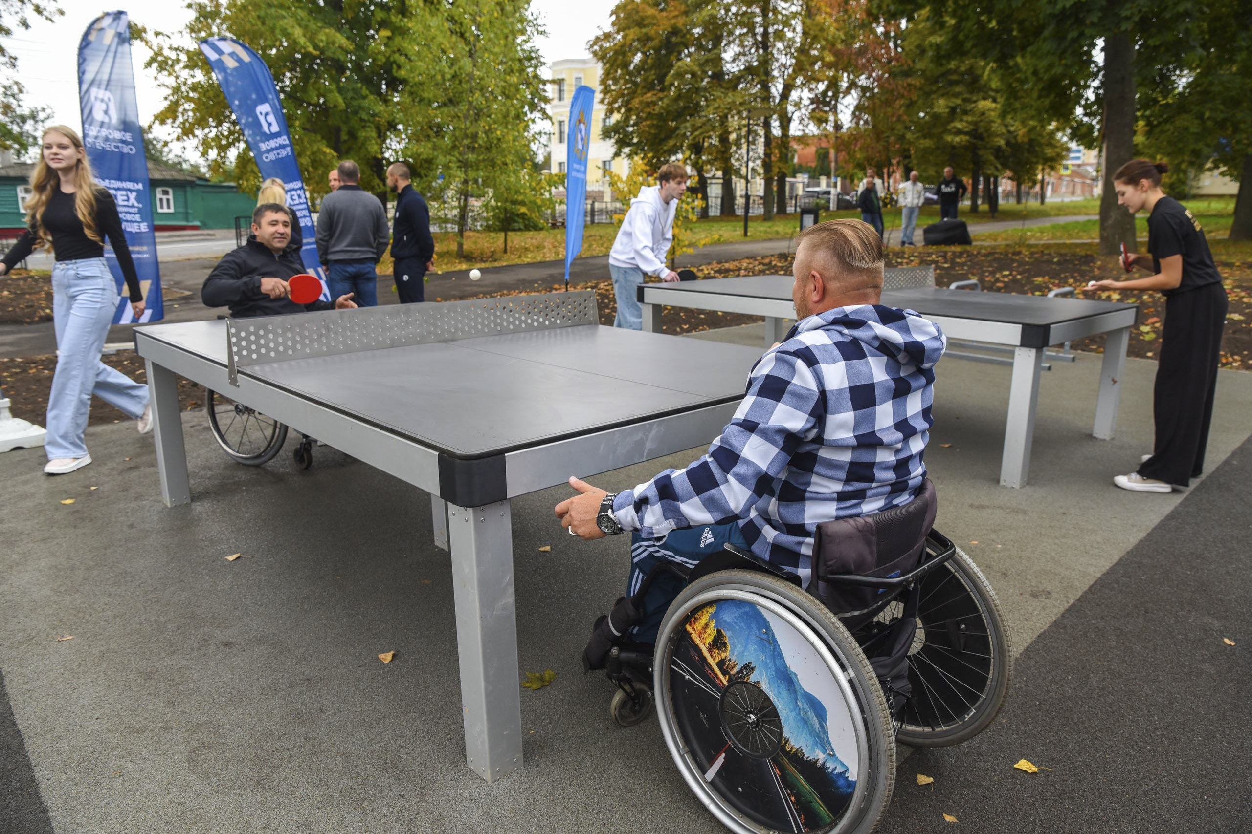 – Площадка отличная. Здесь есть всё, чтобы заниматься с весом собственного тела: и турники, и брусья, и небольшой скалодром, и сетка, и, пожалуйста, рядом настольный теннис. То есть в принципе всё, что можно прокачать на улице, – отметил спортсмен Михаил Салтыков.