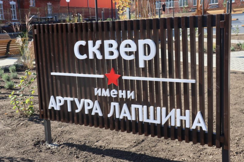 На территории сквера установлена современная детская игровая зона, высажены деревья, кустарники и цветы. Сейчас специалисты завершают благоустройство: приводят в порядок дорожки, монтируют освещение и малые архитектурные формы. Ранее заброшенный пустырь превратился в современный сквер для отдыха, встреч и спортивных занятий. Концепция проекта была разработана совместно с матерью Героя России Анжелой Лапшиной, которая поддержала все предложения и подчеркнула важность увековечения памяти сына и создания популярного места для молодежи.