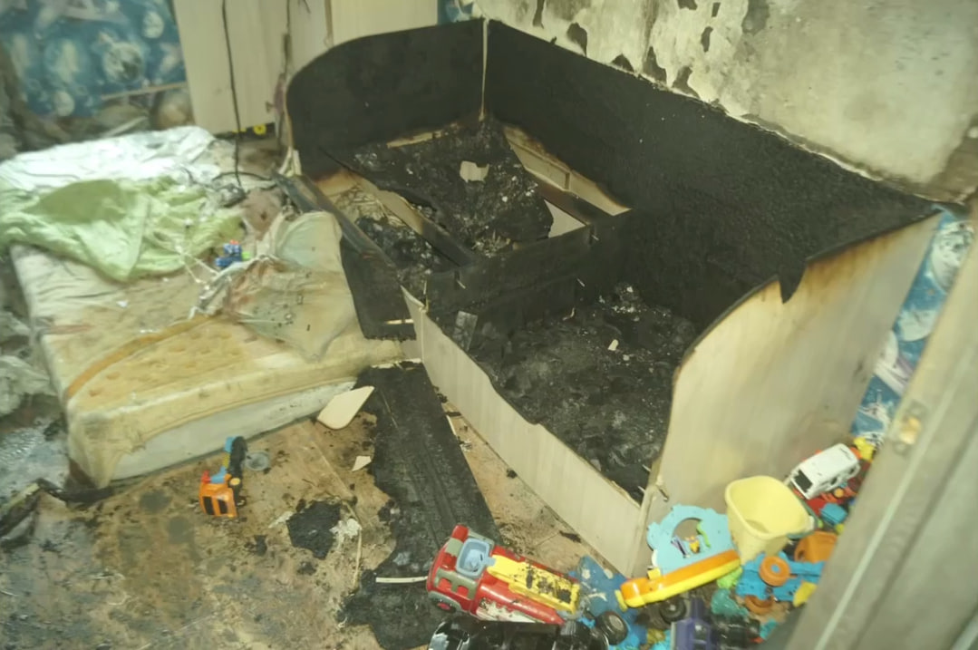 Он поджёг бумагу на матрасе детской кровати в одной комнате и подушку в другой. Когда начался пожар, он покинул квартиру и стал наблюдать за происходящим со стороны. Позже, во время разговора с полицейскими, он выразил раскаяние, объяснив свои действия приступом ревности и чрезмерным употреблением алкоголя.