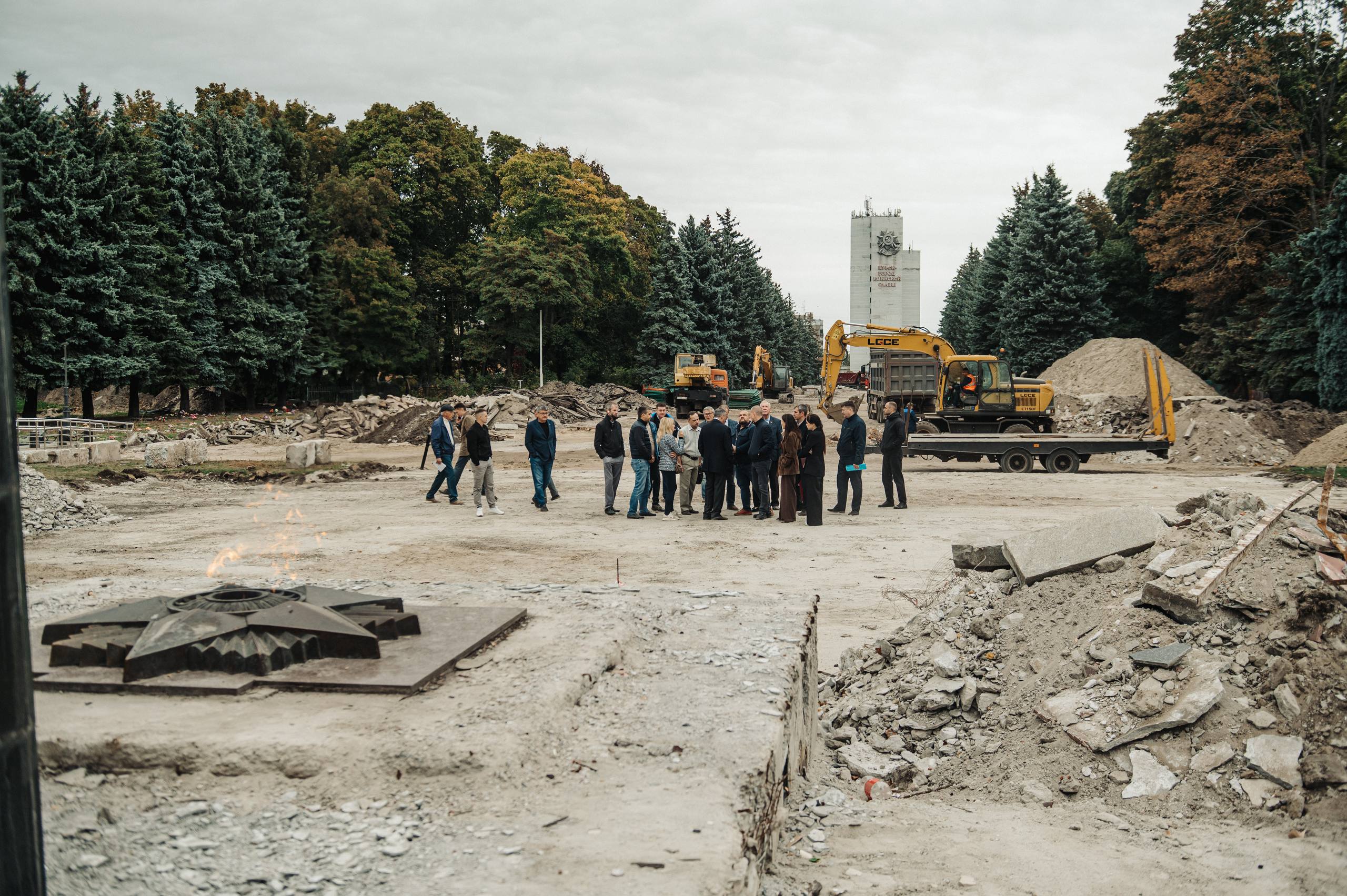 Сейчас подрядчик завершает демонтажные работы в районе памятной стелы. До конца строительного сезона планируется проложить все необходимые коммуникации: для освещения, автополива и водоотведения.