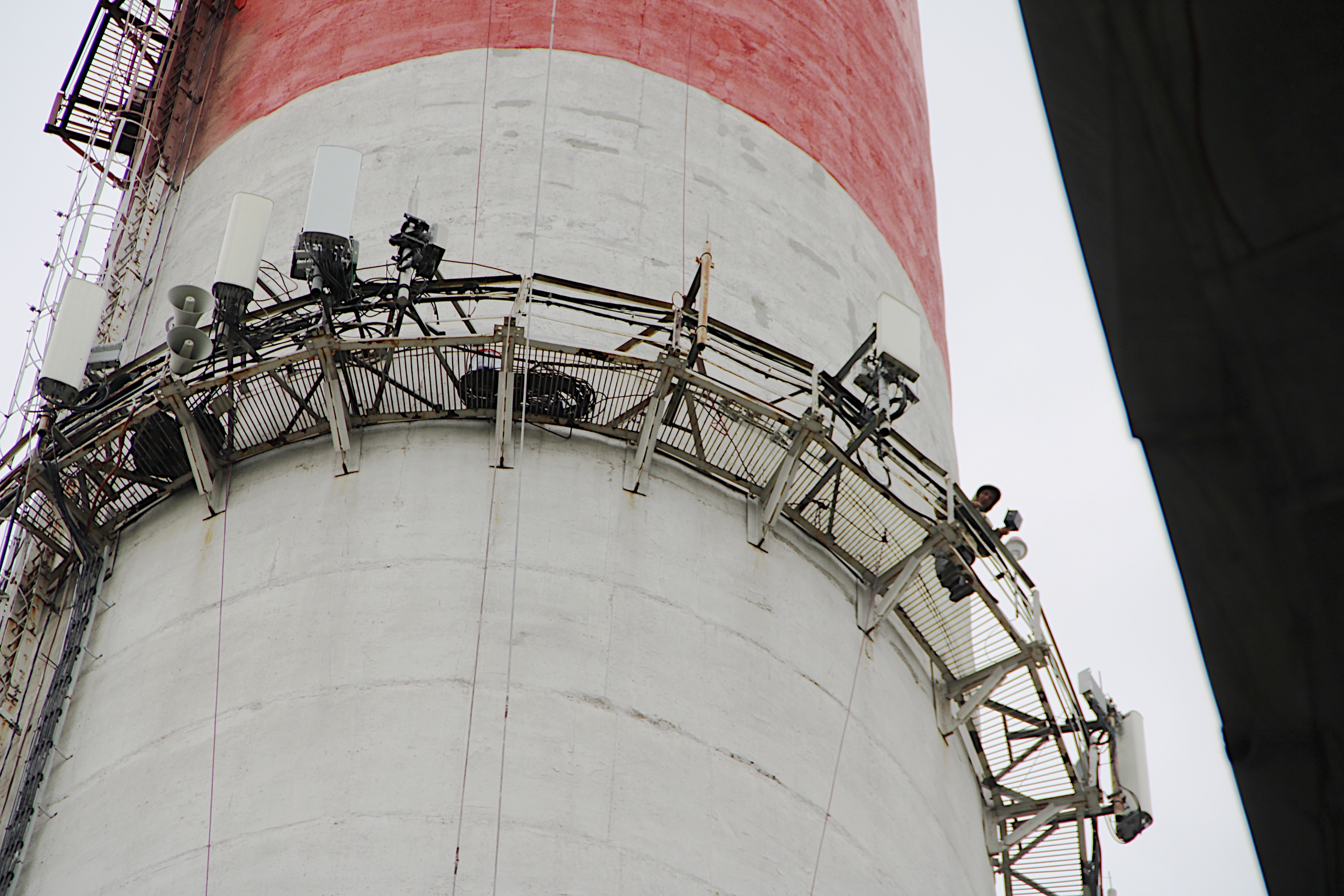 На этой неделе подрядчик проводит обновление маркировки верхней части дымовой трубы ТЭЦ-4. На ярусах устанавливают 16 новых красных огней, которые обеспечивают видимость конструкции со всех направлений.