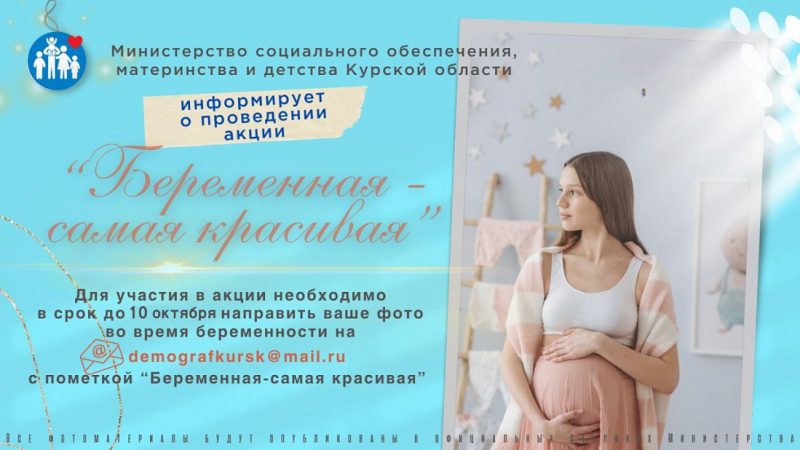 Чтобы принять участие в акции, нужно сделать своё самое красивое фото в период беременности (можно с партнёром или старшим ребёнком). До 10 октября 2025 года отправьте фото на электронную почту demografkursk@mail.ru. И написать несколько слов о своём счастье ожидания.