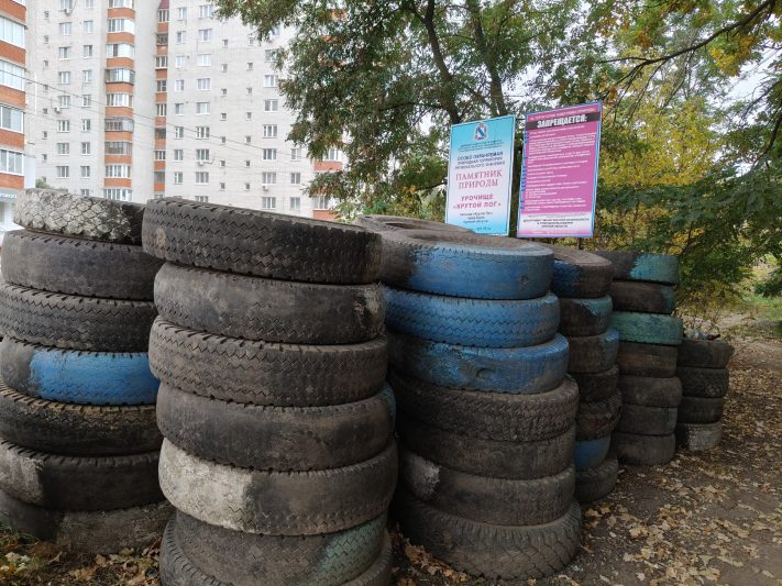 Склад использованных автопокрышек напротив дома 1-а на улице Орловской обнаружили наши читатели. Прямо под вывеской «Памятник природы урочище «Крутой Лог». Некоторые покрышки покрашены, что наводит на мысли, что они использовались в качестве клумб.