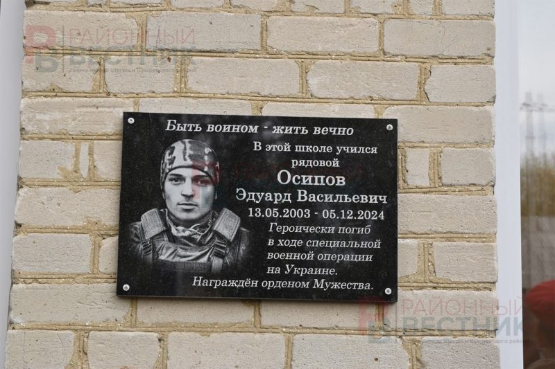 В Курской области увековечили память ещё одного земляка, который погиб в ходе выполнения боевых заданий в зоне СВО. Мемориальную доску Эдуарду Осипову открыли в Большеохочевском филиале Охочевской школы Щигровского района. Он отдал жизнь за Родину, когда ему был всего 21 год.