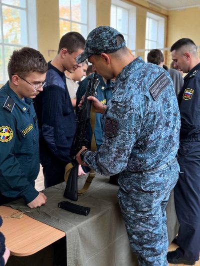 Студентам разрешили провести разборку-сборку пистолета и автомата, примерить бронежилеты и каски, а также познакомили со способами оказания доврачебной помощи.