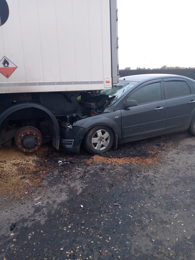 На месте аварии огнеборцы обнаружили, что автомобиль «Форд Фокус» въехал в стоявшую фуру «Скания». В результате ДТП пострадал пассажир легкового автомобиля.
