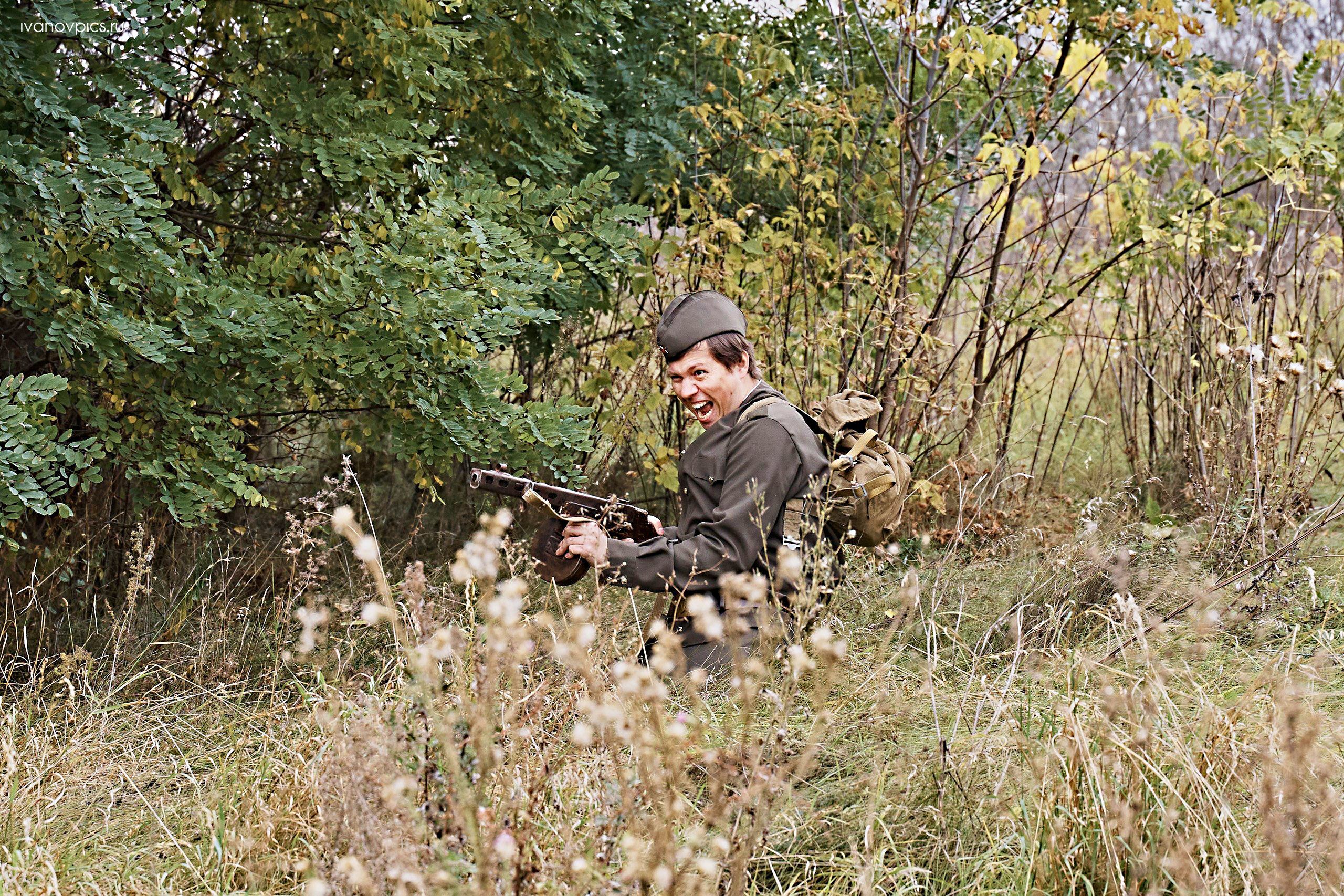 – На этой локации нужно было снять всего лишь два кадра, но на это у нас с командой ушло около двух часов. Мои помощницы Елизавета Чунюкина и Анастасия Яременко все эти два часа бросали землю в пробегающего мимо них актёра, а наш фотограф непрерывно бегал по лесу с дымовой шашкой. Зрелище, конечно, было впечатляющее, но утомительное. Хорошо, что нас никто не видел, – говорит Валерия
