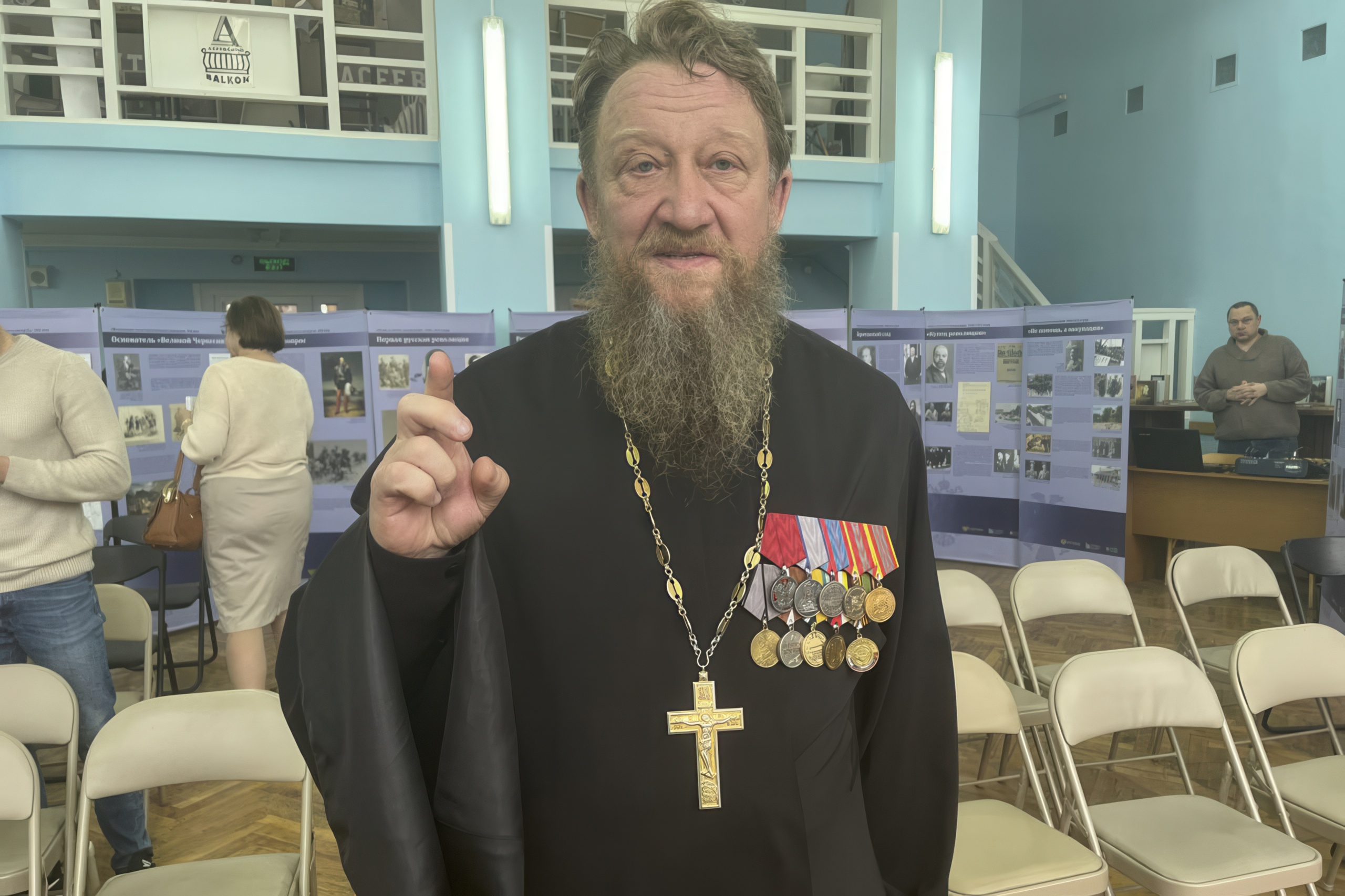 Герои книги присутствовали и на презентации. Протоиерей Александр Зинченко – помощник начальника УФСИН по Курской области по организации работы с верующими в учреждениях исправительной системы. Священник в девятом поколении, с первых дней СВО духовно окормлял бойцов на первой линии, привозил гуманитарную помощь, участвовал в эвакуации жителей с опасных территорий.