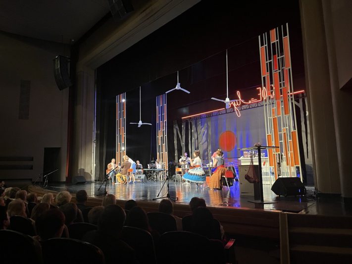 Твист, рок-н-ролл, песни бардов и стихи. В Курске продолжаются гастроли Московского Губернского театра. Сегодня мы окунулись в атмосферу 60-х. На сцене драматического театра имени А.С. Пушкина — «Поэтическое кафе «Луч». В основе спектакля — поэзия периода «оттепели». Место действия — кафе, где раз в неделю говорят только стихами — студенты, геологи, поэты, бывшие узники лагерей и будущие диссиденты. Они влюбляются, спорят. Спектакль выстроен из стихотворений 27 поэтов. Многие сегодня звучат с театральных подмостков впервые. «Поэтическое кафе «Луч» — работа режиссера Ольги Матвеевой. Художественный руководитель постановки — Сергей Безруков.