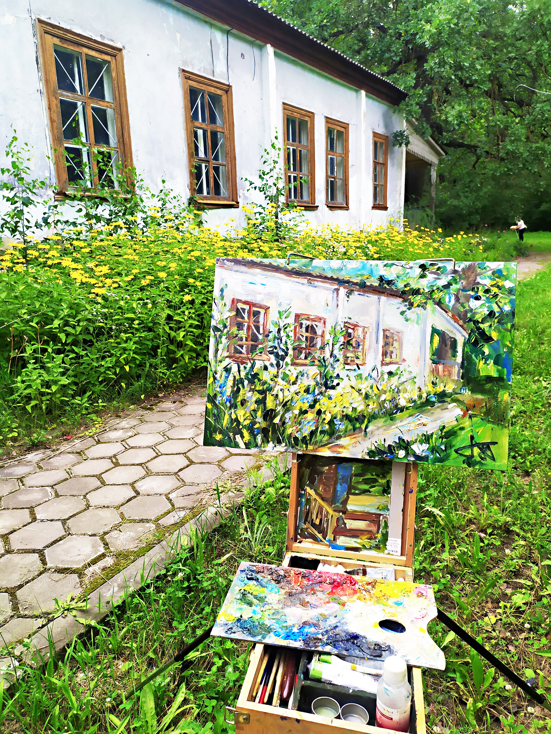 – В другой раз на пленэре в усадьбе Нелидовых попала под сильный дождь, – продолжает художница. – Краски не ложились на мокрый холст, этюд я дописывала уже дома, но после этих двух суровых пленэров поняла, что пасмурная погода или дождь – в общем, некомфортные условия помогают импрессионисту лучше воплотить свои задумки на холсте.