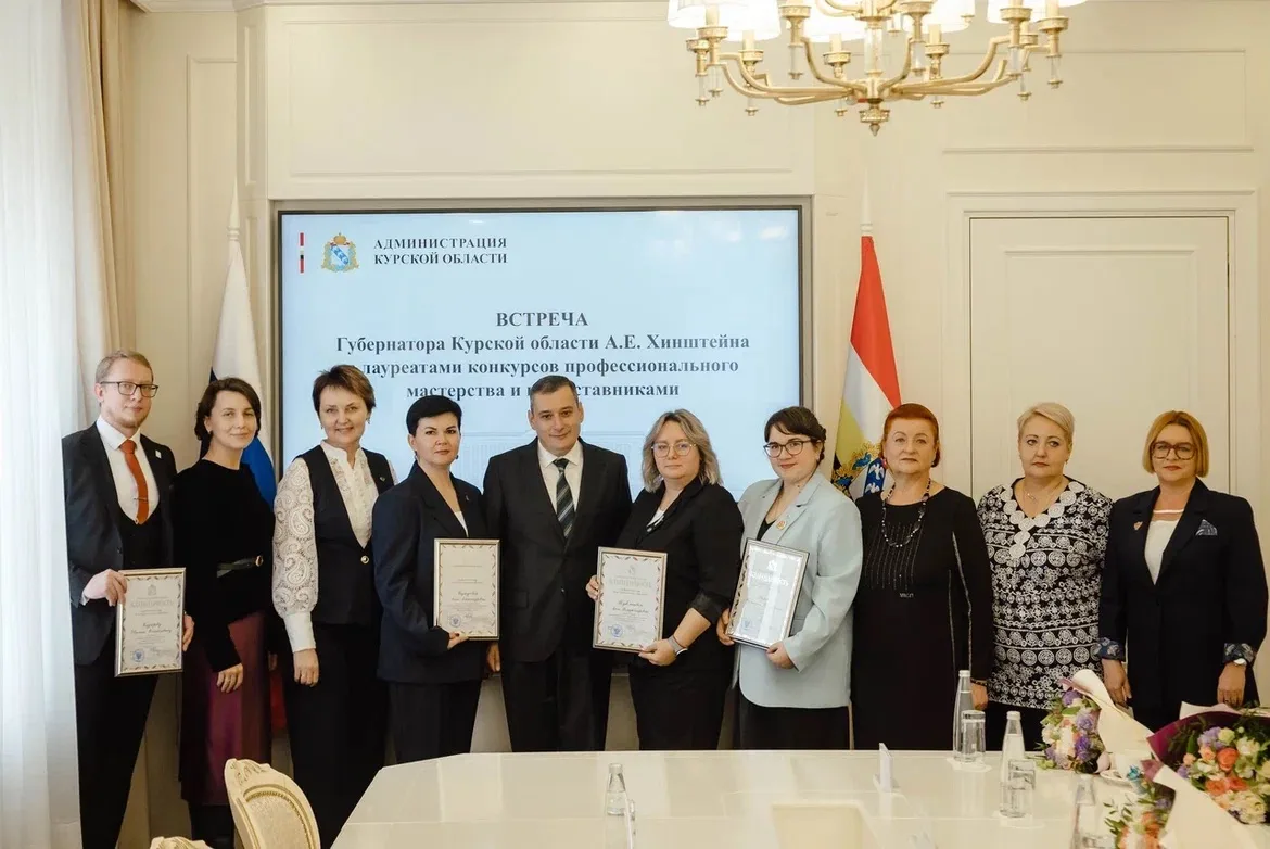 Губернатор Курской области Александр Хинштейн встретился с педагогами региона, которые получили всероссийское признание за профессиональное мастерство, и их наставниками. Он отметил, что эти люди ежедневно подтверждают преданность своему делу и воспитывают у детей честность, уважение и достоинство.