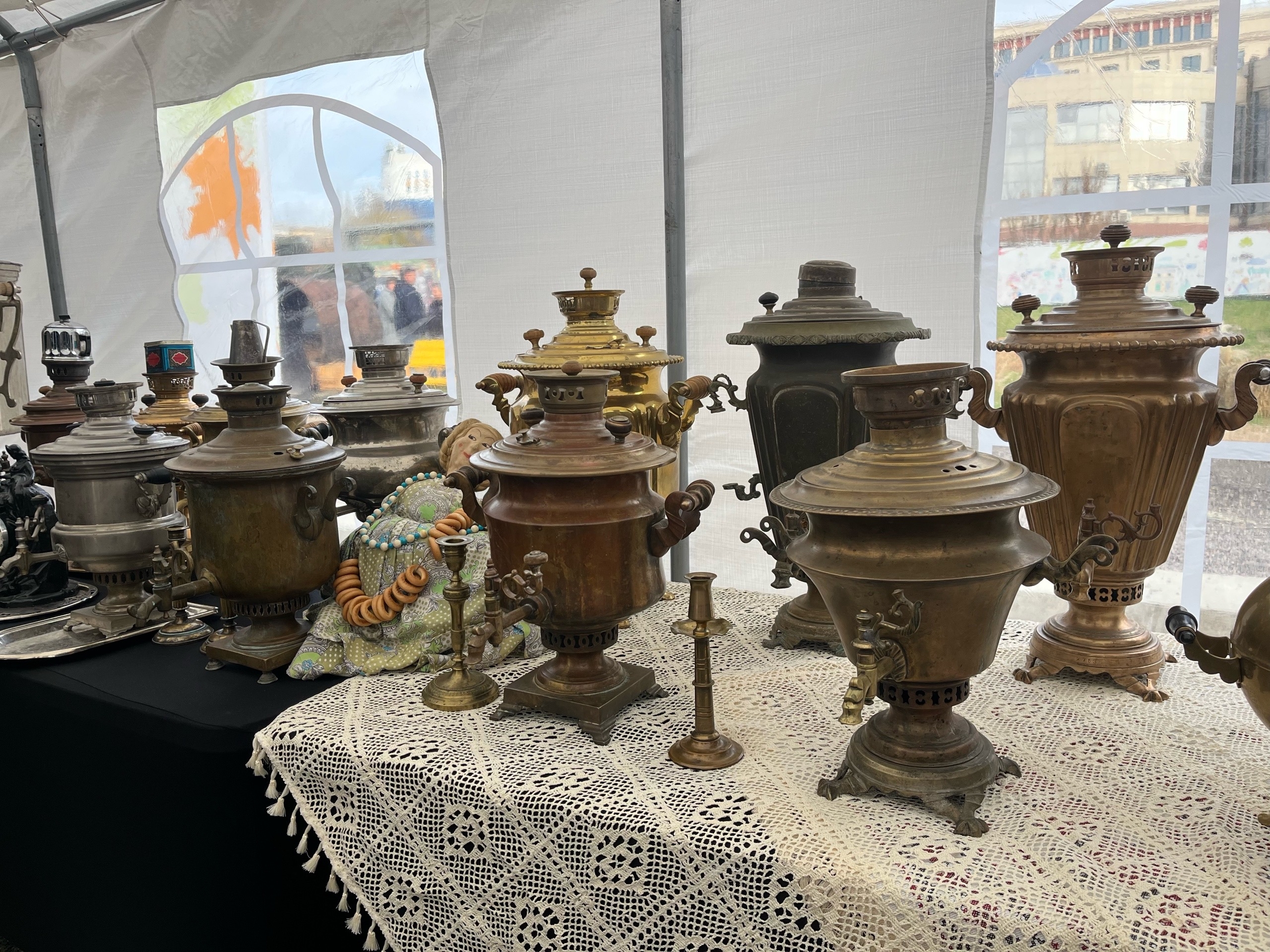По соседству — выставка самоваров. Её подготовил курский коллекционер Александр Долгополов. В экспозиции — порядка 30 самоваров от компактных сувенирных моделей до образцов объемом до 45 литров.